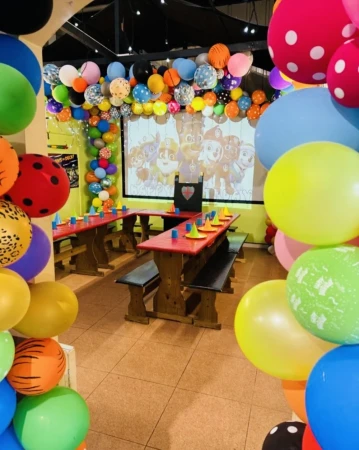 The centre features a huge 21st-century soft play frame with thrilling slides, the famous “Black Hole,” and lots of exciting challenges. Children can also enjoy the 7-metre climbing tower with four climbing walls, indoor football sessions, and themed party rooms including the Theme Room, Balloon Room, and Fun House. Mascot characters like Spiderman, Elsa, Minions, and Peppa Pig can also appear at parties for extra fun.