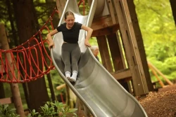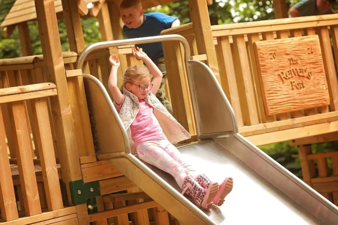 - Adventure Playground: Fly down two exciting zip-wires each spanning an impressive 30 metres in length. Explore two embankment slides, one a 12-metre tunnel slide and the other an eight-metre-long open slide – placed on platform towers, connected with a fun rope bridge. Be the King, or Queen, of the Castle in the brand new large wooden fort. Swing until your heart is content on the cross-scales, and tyre swing or start your own band with our musical instruments. All set against the majestic backdrop of Bowhill Country Estate.