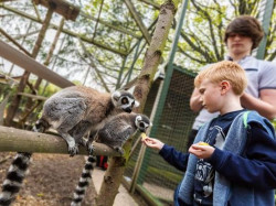 Hoo Zoo and Dinosaur World offers a full day of wildlife and adventure for all ages. Visitors can see Shropshire’s Big Cats, parrots, meerkats, owls, servals, caracals, bobcats, zorillas, and clawed otters, walk among ring-tailed lemurs, explore Wolf Woods with wolves, deer, wallabies, and a badger sett, or discover reptiles in Rivers, Rainforests and Deserts. Hoo-Rassic World features over 30 moving dinosaurs and prehistoric creatures, while Land of the Beasts showcases species from the post-dinosaur era to the Ice Age. Families can enjoy the Indoor & Outdoor Play Area, Land Rover Safari, and Quad Bikes, while animal experiences include Badger Watching, Capybara, Crazy Cat Breakfast, Meerkat and Lemur feeding, Junior Keeper sessions, and Keeper for the Day. Guests can stay at Badger’s Wood log cabin with wildlife views and modern amenities, and children aged 9–12 can join educational Holiday Clubs.