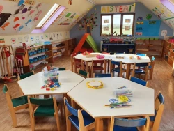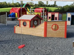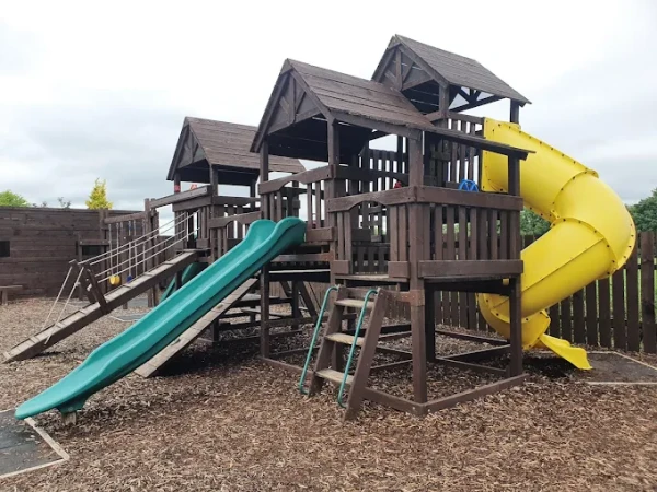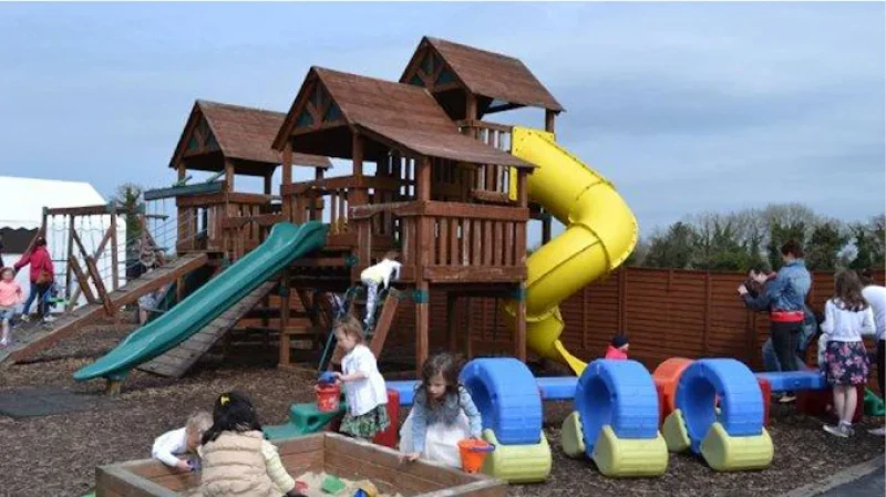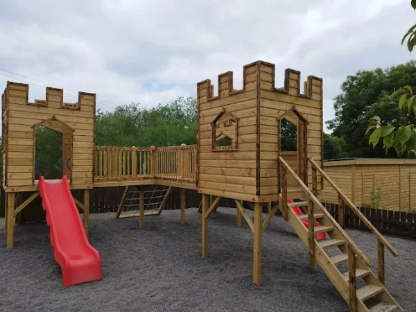 The adventure centre spans three acres and features a wide range of indoor and outdoor activities including pedal go-karting, mini-golf, climbing towers, slides, swings, obstacle courses and imaginative play areas like a garda station and shop. Children can also enjoy sand and water play, mud kitchens, monkey bars and even a disco room for parties. The childcare centre supports development from ages 1 to 5 through structured play and learning activities.