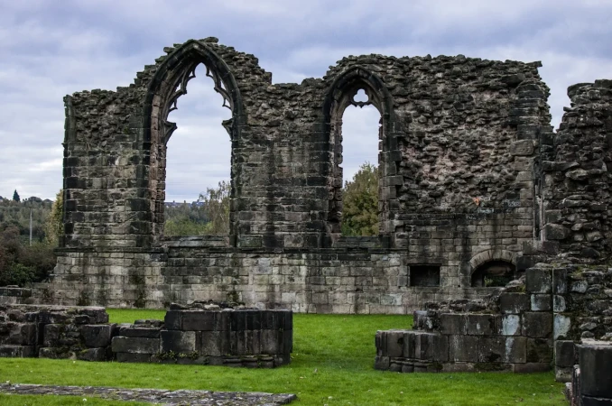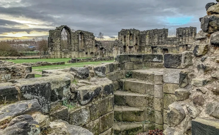The substantial ruins of Monk Bretton Priory, near Barnsley, are now edged by housing estates and industrial developments. When the monastery was built, however, the site in the wooded valley of the River Dearne was peaceful and remote.