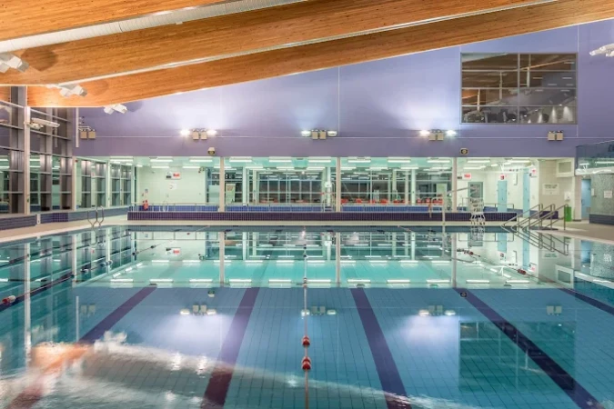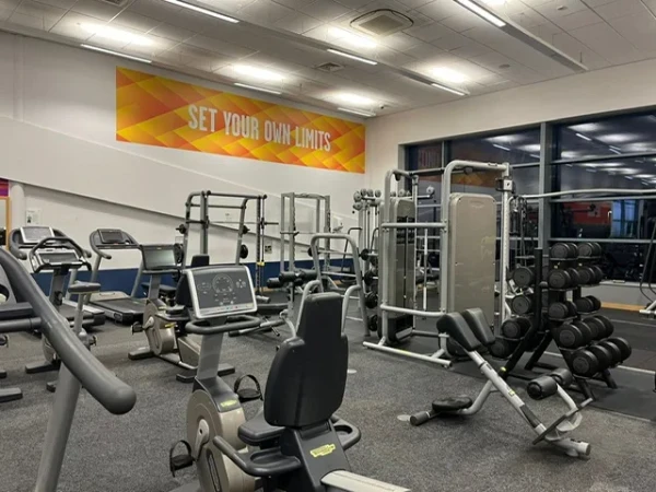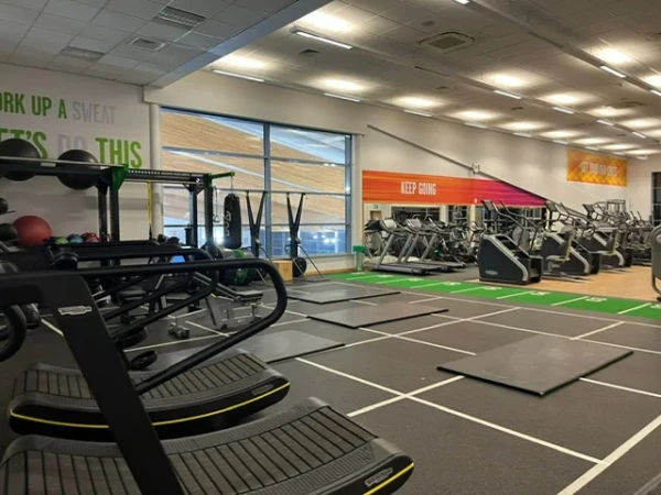 The centre features a fully equipped gym, fitness studios with classes such as Pilates, HIIT, Group Cycle, Aqua Aerobics, Yoga, and Body Conditioning, plus personal training and junior gym sessions. Swimming facilities include a 25m eight-lane main pool and a studio pool with a movable floor, alongside sauna and steam rooms for relaxation. There is also a climbing wall, a large sports hall for activities like badminton and basketball, a new soft play area with party rooms, and an athletics track for clubs and members.