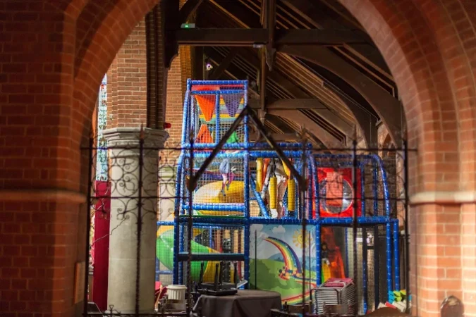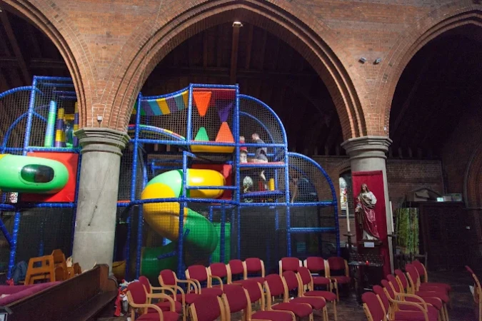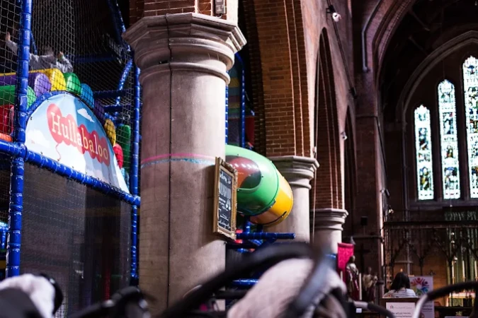 The Sheriff Centre (Hullabaloo Soft Play) in West Hampstead, London, is a colourful and imaginative soft play area uniquely set within the beautiful arches of St James’ Church. Designed for babies and young children, it’s a one-of-a-kind family venue blending play, community, and relaxation.