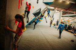 The venue offers 7 climibning walls with different level of difficulty. If you don't feel like climbing you can enjoy refreshments in the spectator area as well.
