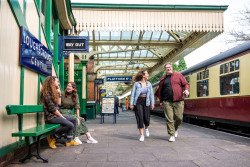 The station features a beautifully restored glass, metal and wood canopy, a wooden-panelled booking hall, and island-style platforms. On site you’ll find the GCR Museum (with over 500 railway artefacts), the Emporium selling railway memorabilia, the Locomotive Shed, and a Grade II listed Signal Box. Facilities include a buffet serving hot and cold meals, a gift shop, picnic area, accessible facilities, and close-up views of steam engines taking on water.