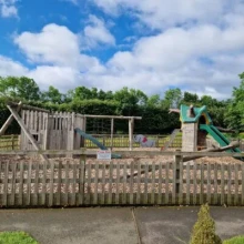 The Play Barn includes an indoor play area aimed at under 5s, featuring a soft ball play area and ride-on Barney for young children. Outside, children can enjoy swings, a seesaw and a tree house slide in the outdoor play area. Additional on-site features include an award-winning farm shop, The Potting Shed garden centre, and a large café with indoor and outdoor seating.