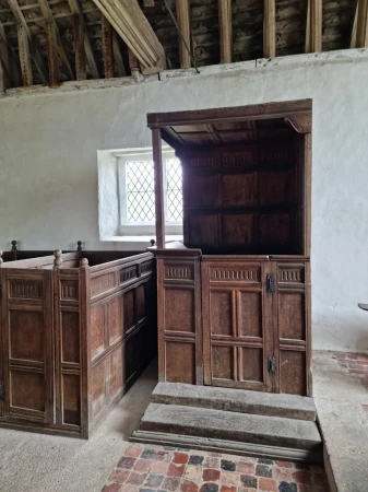 The structure of the present building dates from this time. In 1377, the manor of Langley passed to the Lee family, who fitted out the chapel in about 1546. In 1591, Sir Humphrey Lee moved to Langley. He was probably responsible for re-roofing the chapel in 1601 – a date given on the nave roof – and refurnishing it a few years later.