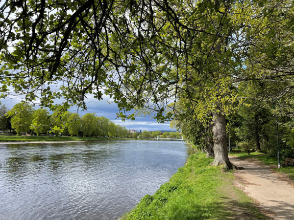 The islands are connected by charming Victorian footbridges, allowing visitors to explore a network of woodland paths surrounded by tall pine trees and mature greenery. Visitors can enjoy leisure walks, wildlife spotting, and scenic views of the flowing river, with chances to see seals, birds, and salmon fishing in the summer. Unique features include carved bench sculptures and a fun “Nessie” sculpture made from a fallen tree. The walk also passes landmarks like the Inverness War Memorial, with beautiful seasonal floral displays, making it perfect for photography and relaxation.