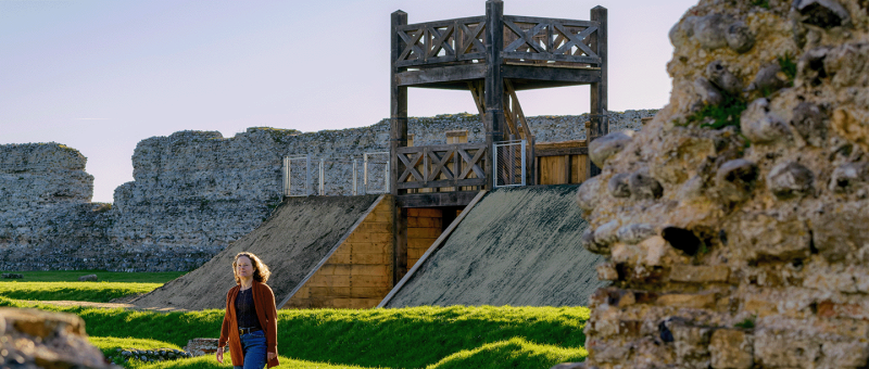 Richborough Roman Fort witnessed the very beginning, the heyday and the end of Roman rule in Britain. An array of fresh features helps you explore and understand this wonderful site. The invading Roman army first came ashore here in AD 43, building a fortress to defend their bridgehead. A timber Roman gateway has been meticulously recreated on its exact spot. Climb it for panoramic views over the whole site and the Kent countryside.