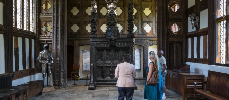 Rufford Old Hall be wowed by the Tudor Great Hall with its fantastic furniture, arms, armour, tapestries and the carved oak screen, a rare survivor from the 1500s. History springs to life in the Hesketh's dining room, its food-laden table, lit candles and 'fire in the hearth' waiting to welcome the family's dinner guests.